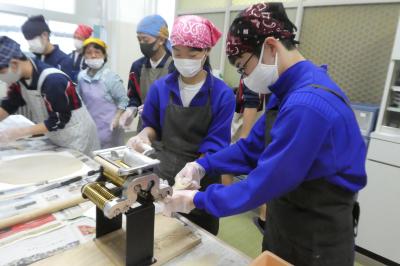 門前高校・七尾特別支援学校輪島分校と合同でそば作りを行いました。
