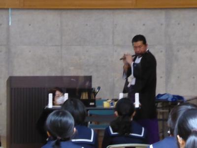 全校音楽にて校務士の四柳さんから雅楽について教えてもらいました。
