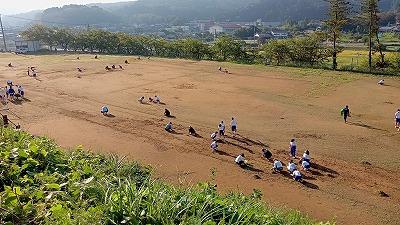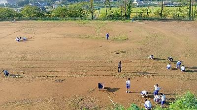 8月29日(日)早朝よりPTAの皆様にグラウンドの除草作業をしていただきました。