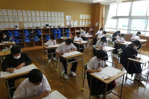 1年生は初めての定期テストです。一生懸命問題を解いています!