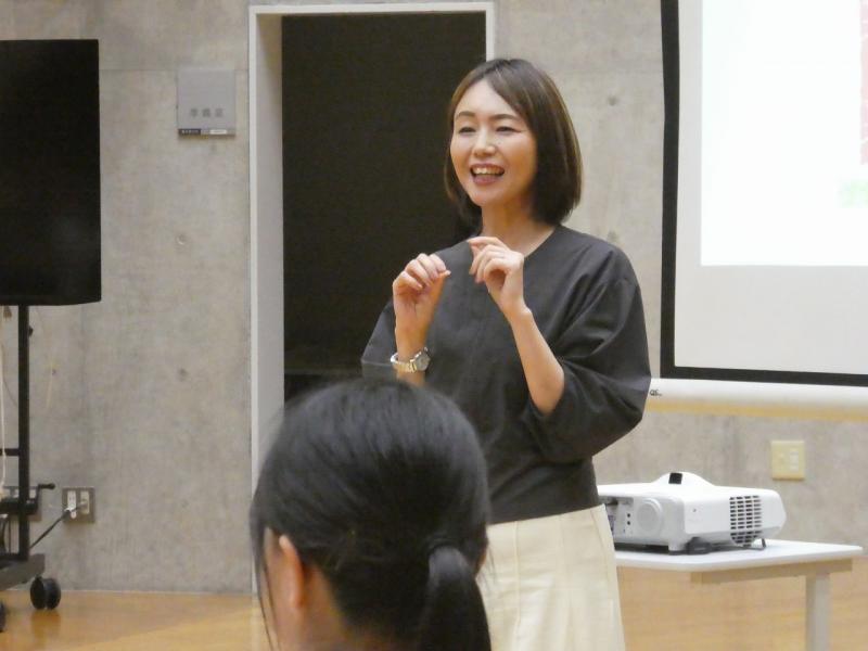フリーアナウンサーの山田彰子(やまだ あやこ)さんをお招きし、アナウンスのレッスンを受けました。これは、生徒たちのコミュニケーション能力の向上をめざす取り組みの一環です。