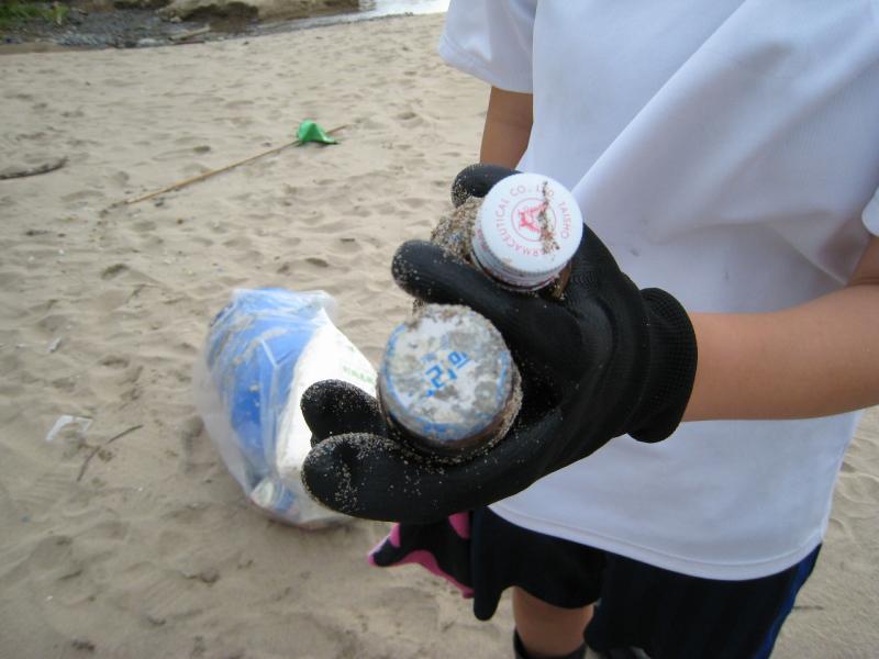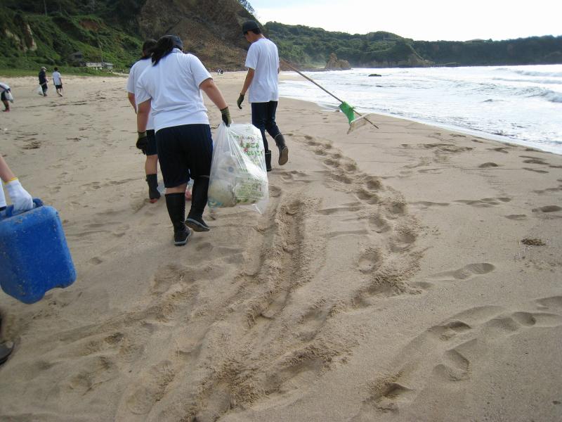 地震後、「鳴かなくなった」と聞いていた琴ヶ浜ですが、生徒たちの調査により、海の近くの白い砂はまだ「キュッキュッ」と鳴ることを確認できました。清掃した結果、ゴミは想像より少ないものの、プラスチック製の飲食類のゴミが目立ちました。