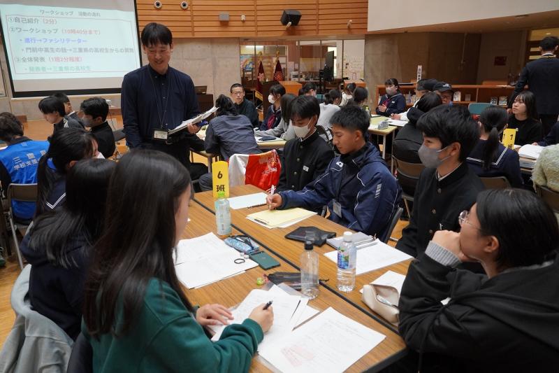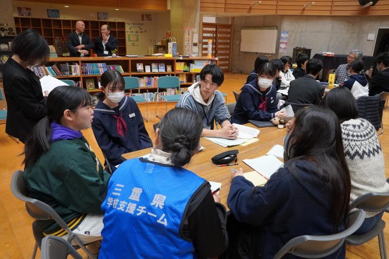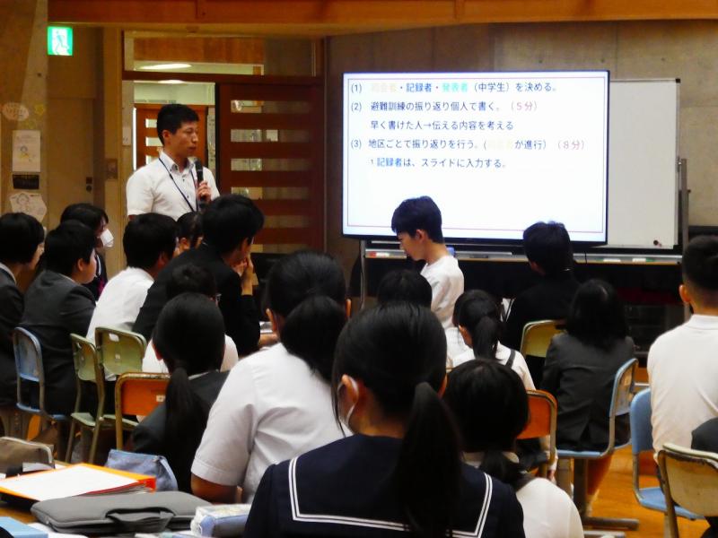 三重県の高校生を本校に迎え、防災をテーマにした交流会を行いました。はじめに、教育委員会の方々や本校職員、そして商店街の方から、能登半島地震や奥能登豪雨当時の対応や避難所運営の実際についてお話を伺いました 。