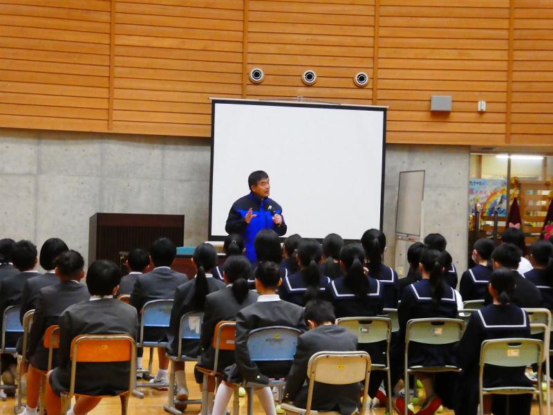 馳浩石川県知事をお迎えし、小中合同で「知事と語る会」を開催いたしました。