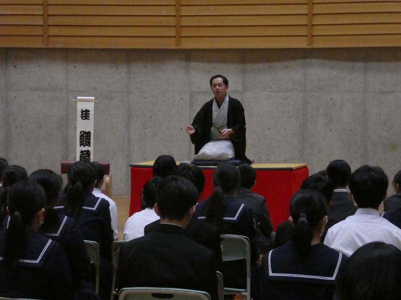 前半の落語では、扇子と手ぬぐいだけで虎の鳴き声を表現したり、うどんをすする音を出したりするプロの話芸に、生徒たちは「想像力が刺激された」と大興奮。『動物園』や『時うどん』といった演目で、会場は大きな笑いに包まれました。