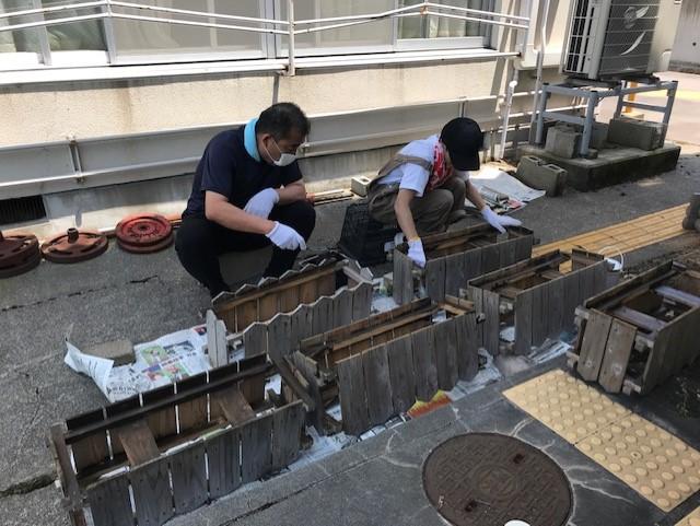 24日(水)、作業学習の時間を利用してプランターにペンキを塗りました。10月の育友会の奉仕活動で使う予定のものです。