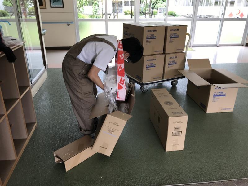 学校で購入した扇風機を組み立てる作業を行いました。10台もあるので一仕事です。まずは、組立説明書をよく読んで取りかかりました。最初は説明書を確認しながら組み立てたので時間がかかりましたが、何台か手がけるうちに作業に慣れスムーズな組み立てができるようになりました。普段はなかなかできない経験ができたと思います。組み立ての間、いろんな方から「ありがとう」「がんばってるね」と声をかけられたことも大きな励みとなりました。