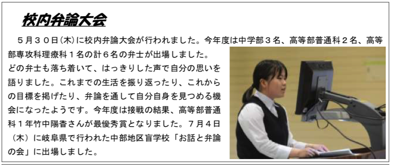 2021年6月2日 11時35分石川県の聖火リレーの走者に選ばれた 横山莉世(中3)さんが、トーチキスに参加し、2020東京オリンピックへ炎を繋げました。学校では、中学部、高等部でトーチキスへの、壮行会、報告会をしました。