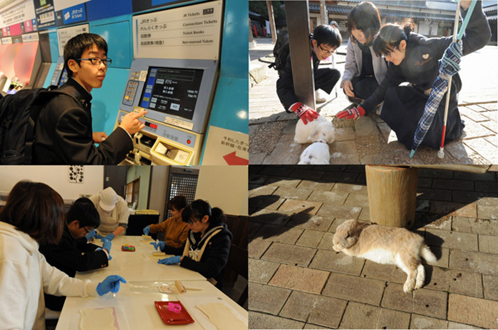 11月15日(金)、中学部の親子体験行事が行われました。バス、列車など切符の買い方や乗り方などを確認しながら乗り継いで、目的地は加賀にある「月うさぎの里」です。