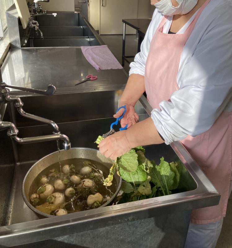 たくさん採れた「かぶ」は、なんと、その日の給食のポトフの食材として使われ、学校のみんなでおいしくいただきました。