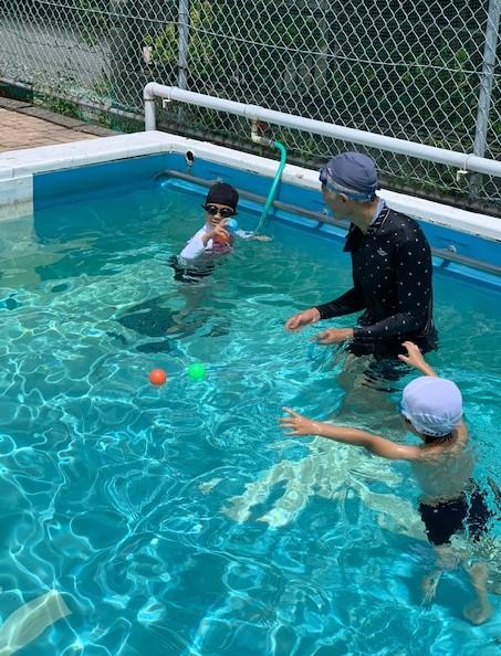 今年は雨が多かった7月でした。待ちに待ったプールです。