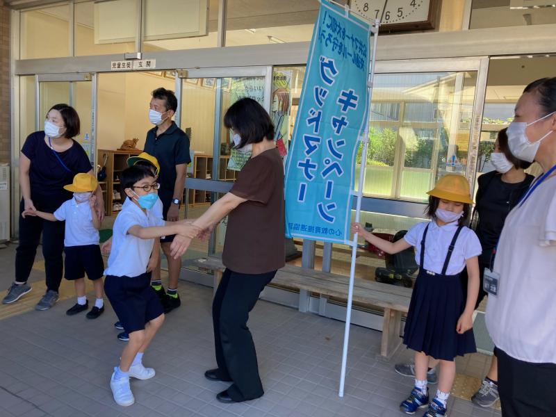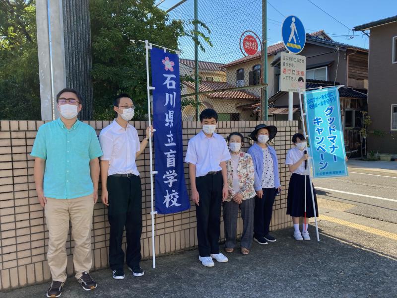 崎浦校下と小立野校下の婦人会の方の協力を得て、グッドマナーキャンペーンを実施しました。毎朝8時から校門前で通勤通学中の方に、「明るく・爽やか」を意識して挨拶しました。少しずつ声も大きくなり、挨拶を交わす場面も見られました。また、生徒玄関前ではスクールバスで登校した生徒に小学部のみなさんが元気いっぱい挨拶しました。