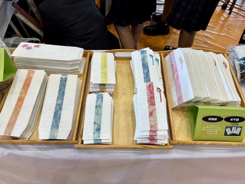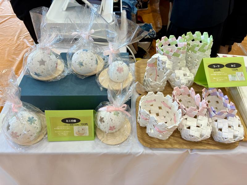 本校の作業班ブルーエンジョイカンパニーの商品「すいとるモン」と「木製コースター」は完売し、むつぼし作業所の点字用紙のリサイクル商品もお客様に好評でした。