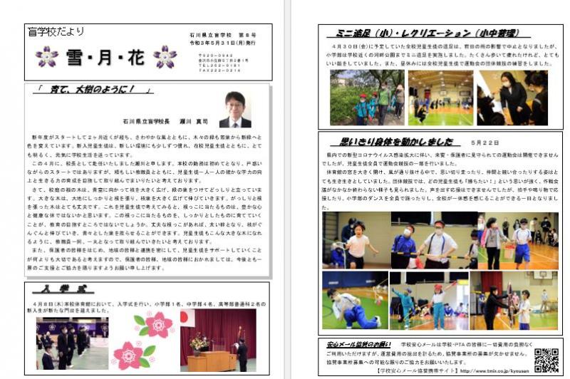 学校だより 雪月花8号 (R3年5月発行)