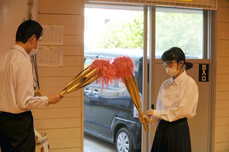 2021年6月3日 11時58分5月31日、石川県内の東京五輪聖火リレーの代替イベントとなる聖火点火セレモニーが金沢市の金沢城公園で開催され、聖火を「トーチキス」形式でつなぎました。この「トーチキス」に中学部3年横山莉世さんが参加しました。ステージ上で聖火の熱さを感じ取り、この火のように、コロナが終息し、人と人、日本と世界が繋がれるようになって欲しいという願いと、この様子を見て少しでも勇気が出る人がいて欲しいという気持ちの思いを込めて次の人へ炎を託しました。