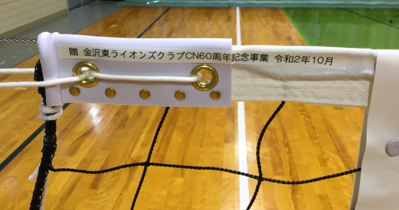 2020年9月30日 12時13分金沢東ライオンズクラブ様よりフロアバレーボール用支柱及びネットが寄贈されました。今後、体育の授業やスポーツ部の活動で大切に使わせていただきます。古い設備から真新しいものになり、児童生徒は気持ちよく活動できるでしょう。心よりお礼申し上げます。