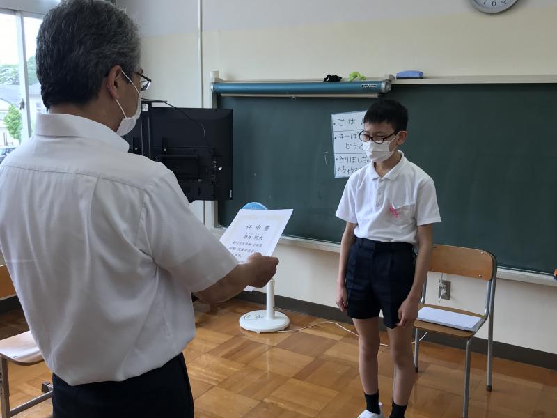 2020年6月23日 18時03分今年度の児童会、生徒会の役員が決まりました。授与式は行いませんでしたが、各クラスで校長先生から任命書を渡してもらいました。緊張した面持ちで、「よりよい学校になるように自分の意見を提案していけたらと思います。」と話す生徒が頼もしく見えました。感染症予防の対策をとりながらも、楽しく過ごしやすい学校になるように、積極的に活動してもらえたらと思います。