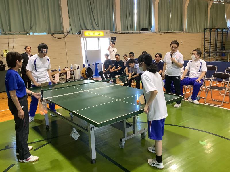 2024年10月2日 15時58分10月1日(火)本校体育館で、石川県障害者スポーツ協会主催のサウンドテーブルテニス(STT)のパラスポーツフォーラムが行われました。本校スポーツ部、教職員、石川県卓球連盟のSTT審判員のみなさんにも参加頂き、講師の穴原さん、中山さんに、審判のジャッジ、練習方法について学ぶことができました。