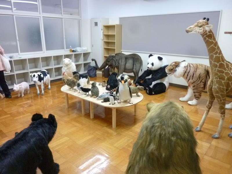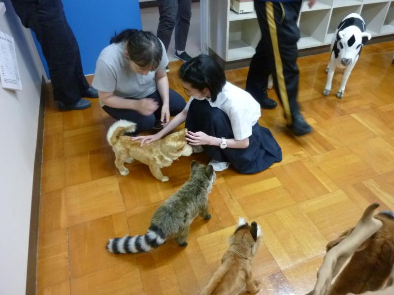 児童生徒は、たくさんの動物に触れながら「ライオンはこんなに大きいんだ、さすが百獣の王。」「ペンギンの足は意外と太い。」と感じたことを話していました。「動いたり噛んだりしないから、たくさん触れる」と嬉しそうに話す生徒もおり、これからも、動物に触れて、大きさや形を確かめたり、想像を広げたりして、学びに活用していきたいと思