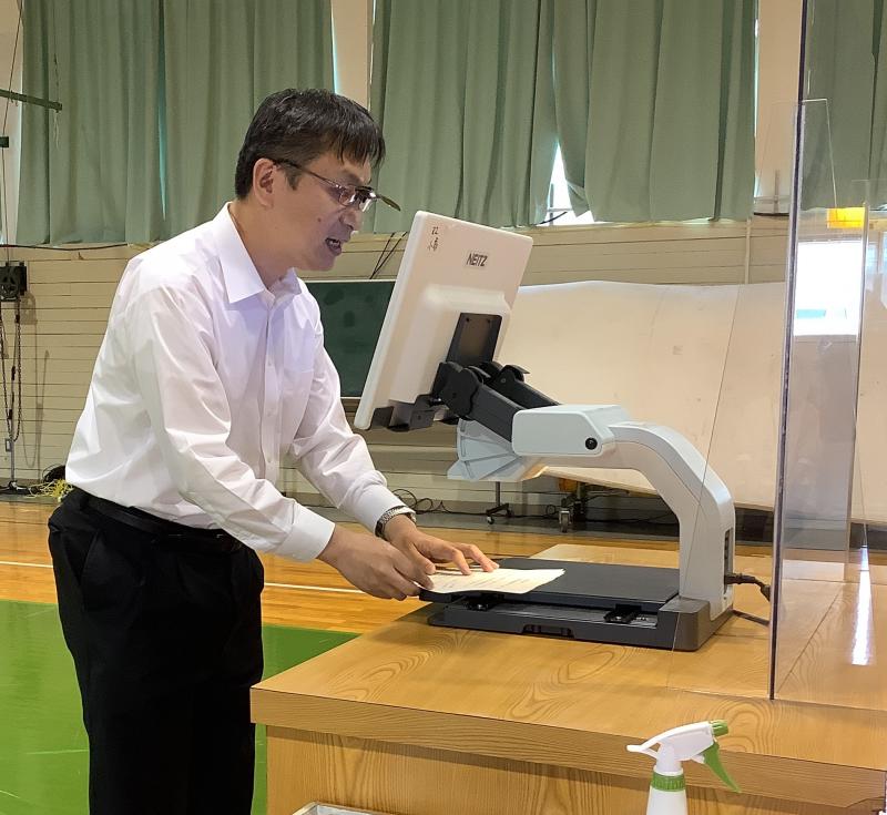「訓練、こちらは石川県立盲学校です。学校は災害による大きな被害はありません。16日は通常通り授業を行います。元気に登校してください。」