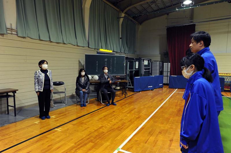2021年12月1日 09時03分11月23日(火)金沢西ロータリークラブより、本校にフロアバレー用のボール、支柱パット、アイマスク等を寄付して頂き、贈呈式がありました。