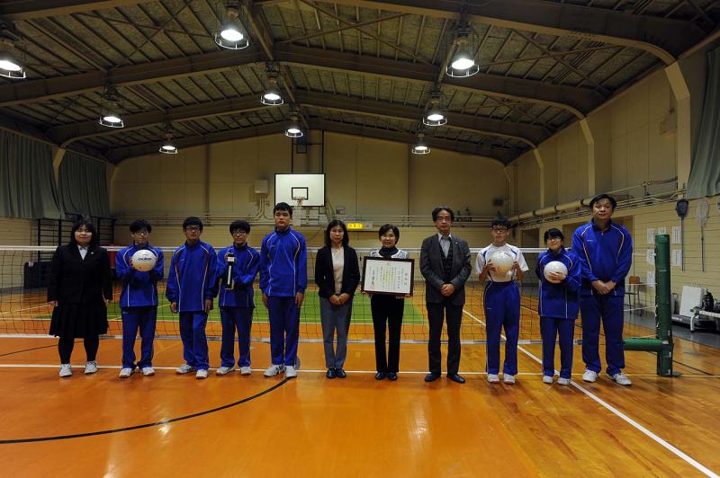 金沢西ロータリークラブの橋本会長より、スポーツ部に激励のお言葉を頂いたあと、スポーツ部奥優樹部長より、「より一層練習に励み、来年の北信越大会 優勝めざして がんばります!」と力強くお礼の言葉を述べました。また、石川県知事より金沢西ロータリークラブへ感謝状が贈られました。