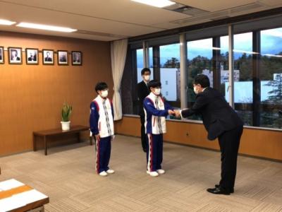 2022年10月28日 19時34分10月24日(月)に、第22回全国障害者スポーツ大会「いちご一会とちぎ大会」に出場する奥 優樹さん(陸上競技100m、200m)、奥 瑞樹さん(サウンドテーブルテニス)が金沢市選手団14名の代表として激励会に参加しました。市長から激励費の贈呈を受け、激励のことばをいただきました。その後、二人は決意のことばを力強く述べ、活躍を誓いました。