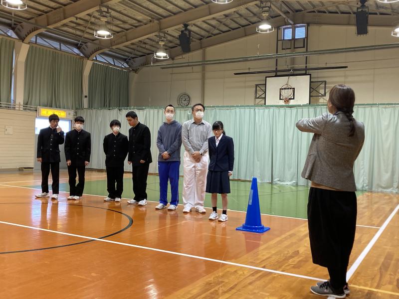 今回の訓練は、就寝中に寄宿舎近隣で火災が発生!と想定し、体育館に避難しました。