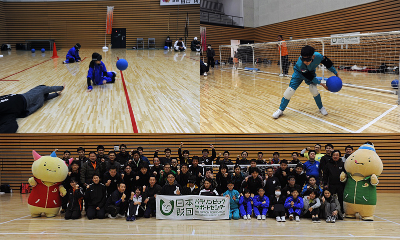 (ゴールボールとは…鈴の入った重さ1.25㎏のボールをアイシェードをした3人が全身で受け、投げ合う形で行うもので、視覚障害者も晴眼者も一緒に楽しめるスポーツです。)