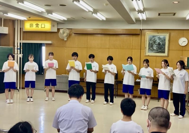 最後に、演劇科による朗読劇「雨にも負けず」と「王様と料理人」を鑑賞し、臨場感ある朗読に全員引き込まれていました。