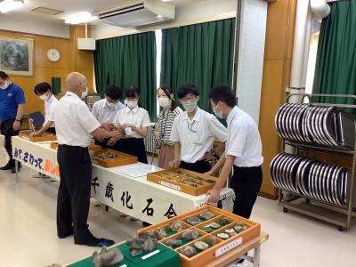 記念に本校に化石標本をプレゼントしてくださいました。触れてみる博物館に展示します。