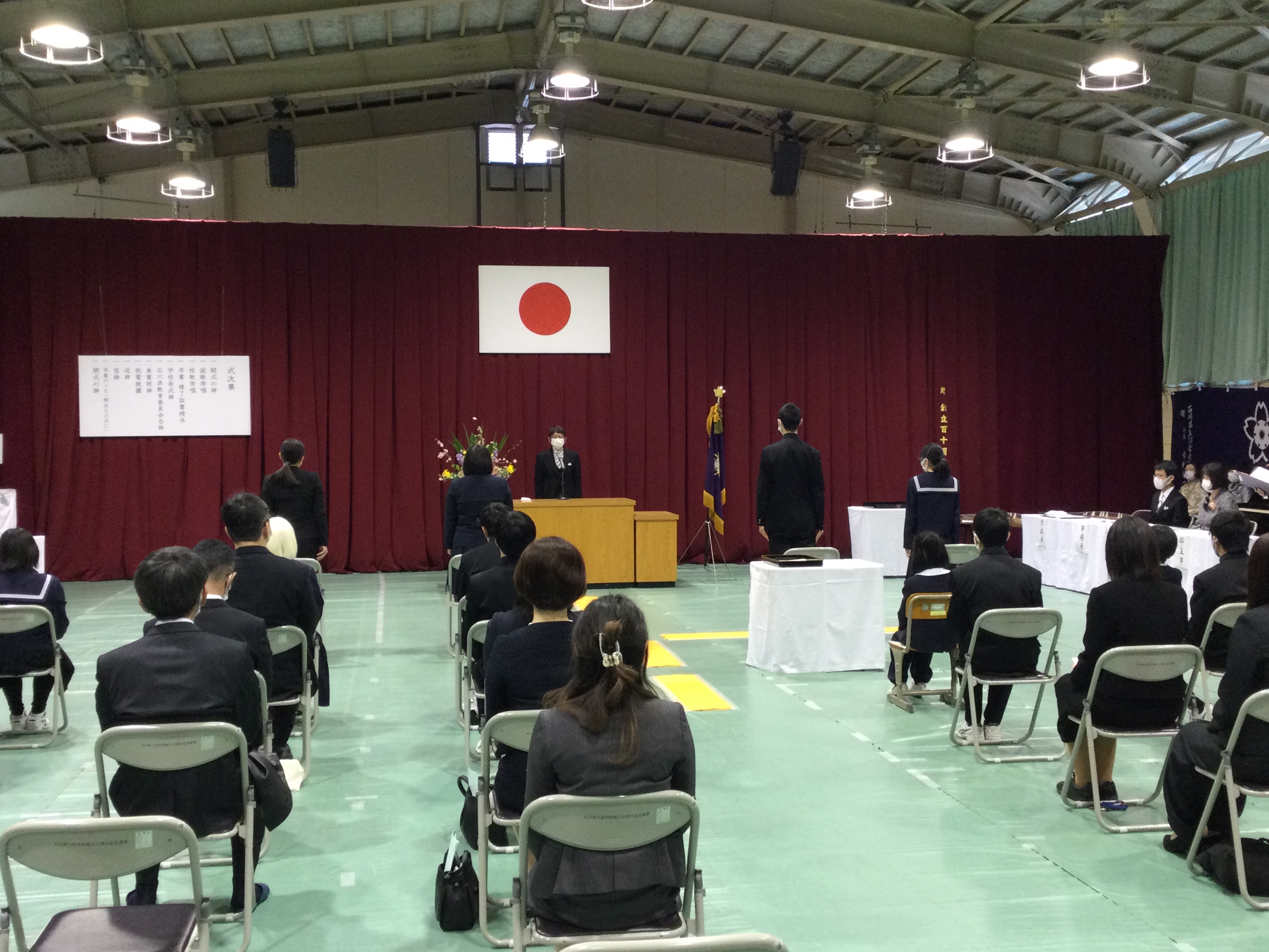 今年の入学式は、会場におけるコロナ感染防止対策を行い、来賓、在校生、教職員が、高等部普通科2名 高等部専攻科保健理療科1名 計 3名の新入生を迎えました。