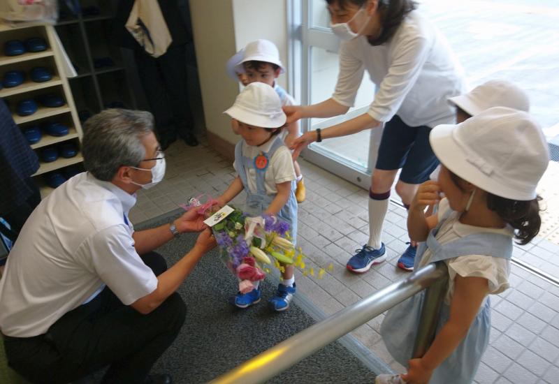 2020年6月11日 11時46分ひかり教育園のかわいいお友だちから、「花の日」の素敵なお花をいただきました。いつも、ありがとうございます。来校者玄関に飾らせていただきますね。