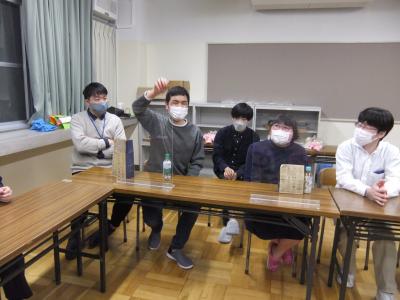 余興では「擬音ゲーム」を行いました。お題を職員が擬音で表現し、舎生が2チームに分かれて1分以内に相談して回答します。