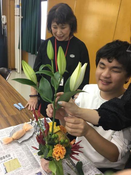 舎生は花の香りや木の感触を楽しみながら、フラワーアレンジメントを楽しんでいました。初めて参加した舎生から「楽しかった!」という声が聞けました。