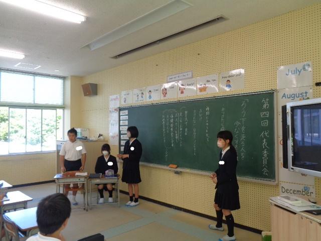 学級代表が、各クラスで話し合って出てきた意見をしっかり伝えてくれました。各委員長は、それぞれの委員会でどんな取り組みができるか考えてくれました。