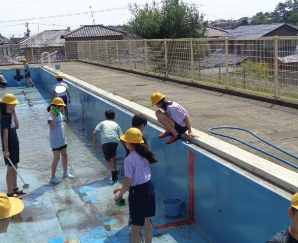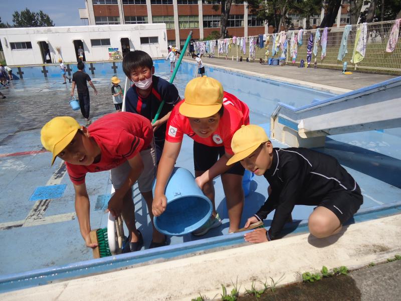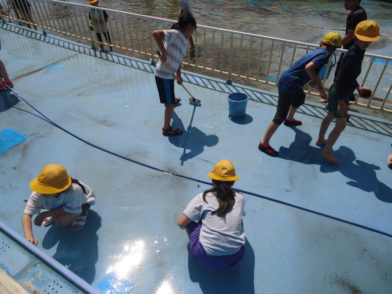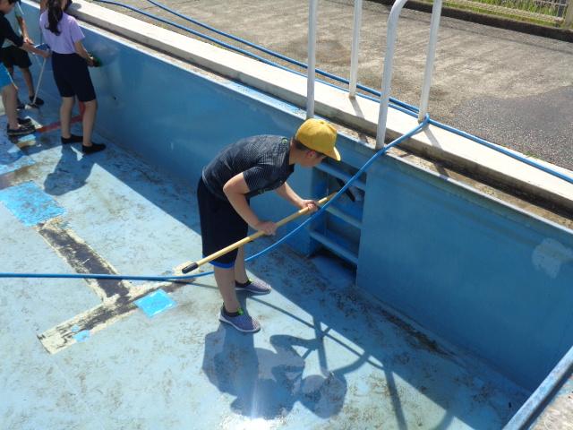 5・6限目に、5・6年生でプール掃除を行いました。