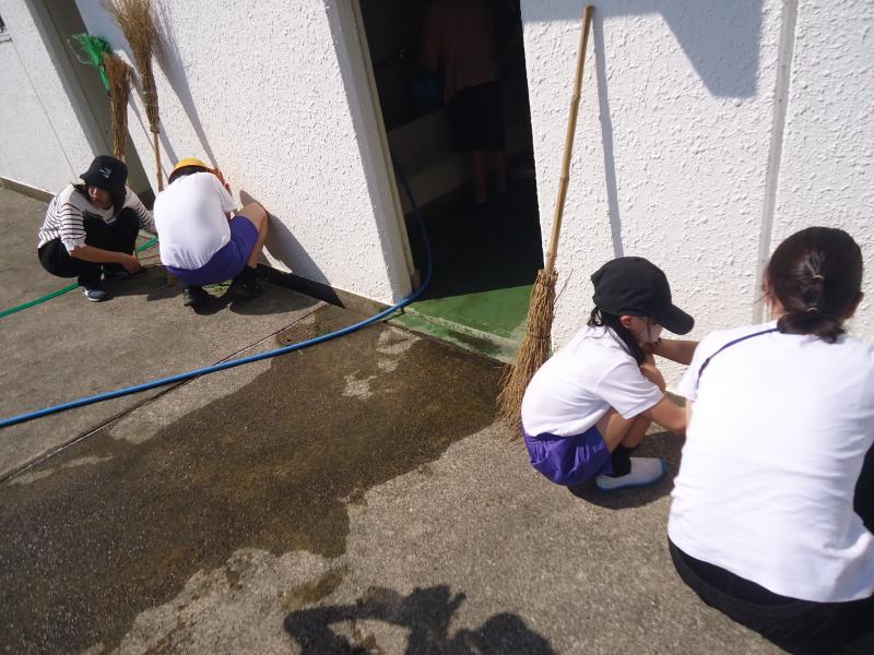 掃除をする前は、砂や松葉が溜まっていたプールですが、5・6年生のおかげできれいになりました。