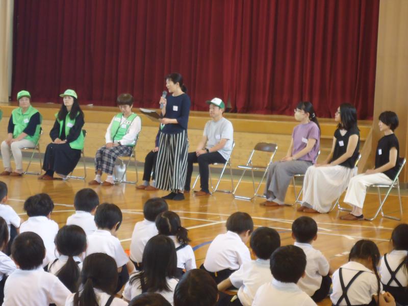 そこで、6月10日(土)の授業参観の日に合わせて、ボランティアの方々の紹介式を行いました。