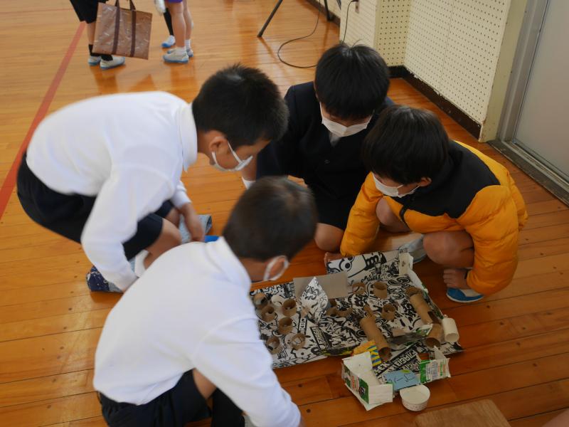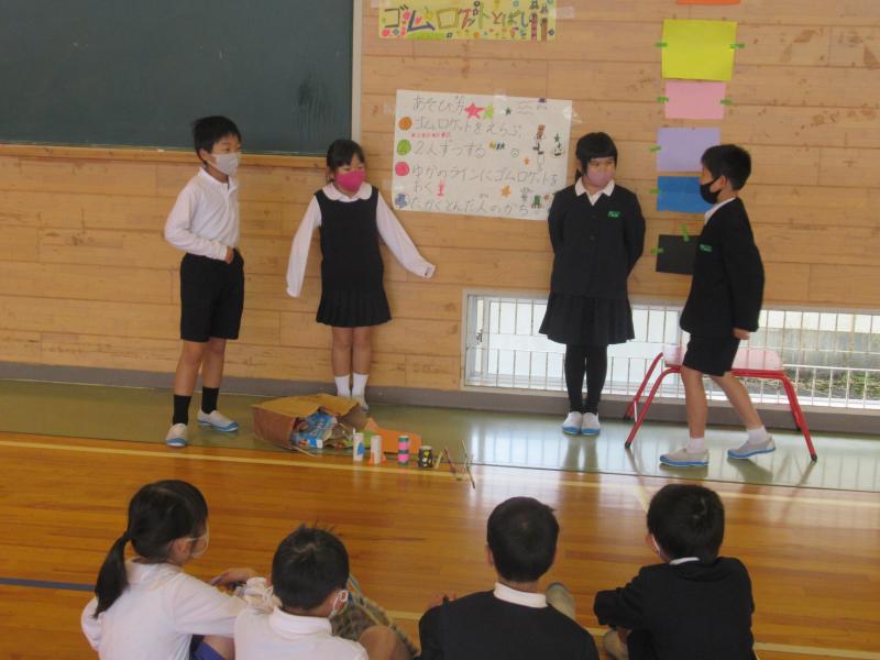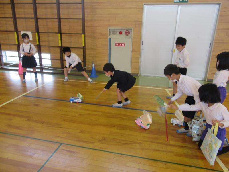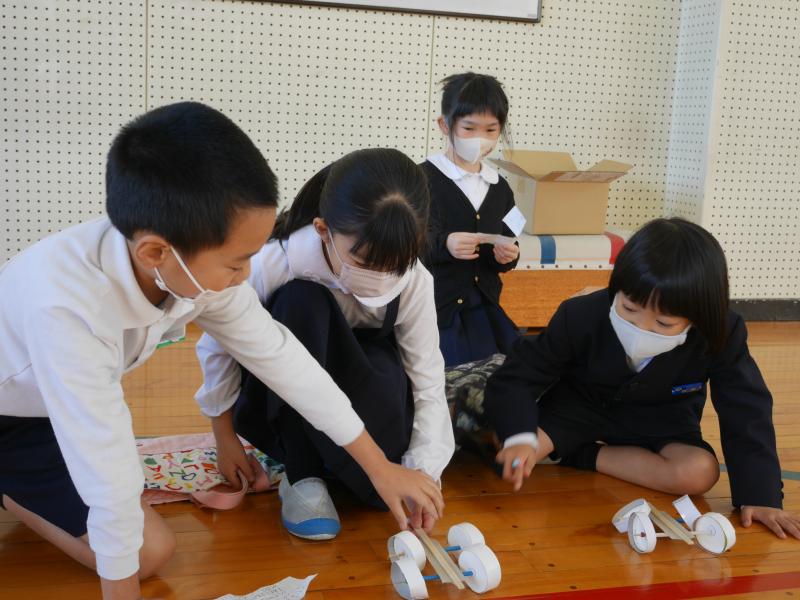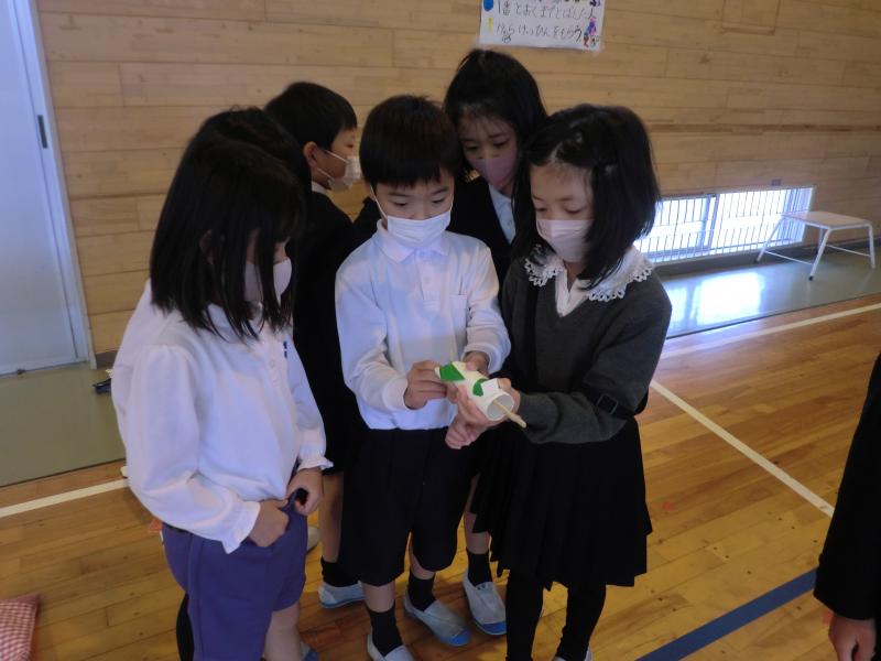 おもちゃを図書室の本から選び、使うものを準備し、説明書を見ながら作り、遊びを考える。これらのことを、できるだけ子どもたち自身の力で進めてきました。なかなかうまくいかないときもありましたが、友達とよく考え、乗り越えていました。