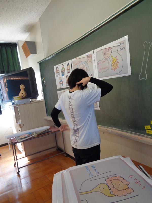 姿勢が悪いと、目が疲れることや、内臓が圧迫されて胃腸や脳の働きにも影響すること、背骨が正しい位置に戻りにくくなることをお話しました。