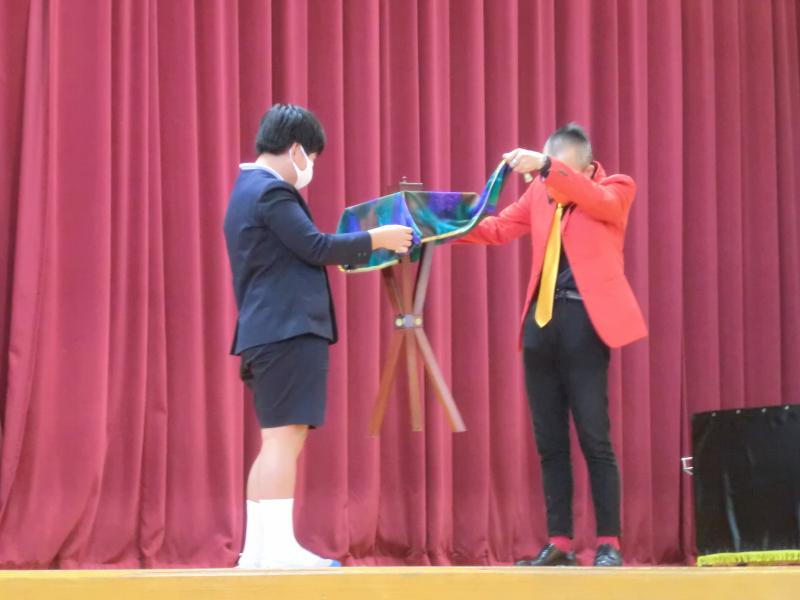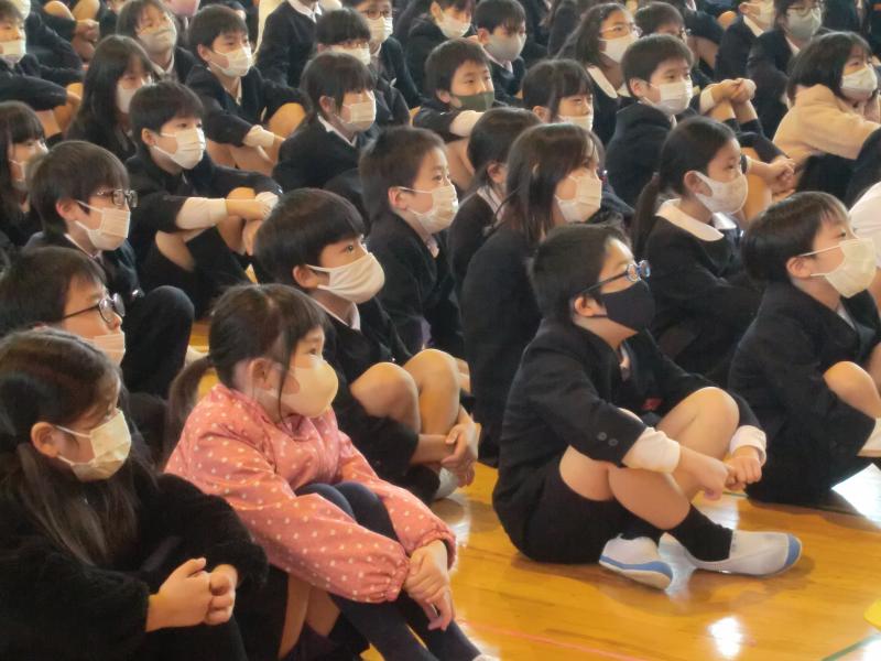 マジシャンルパンさんのマジックで、向粟崎小学校の体育館いっぱいに笑顔の華が咲きました