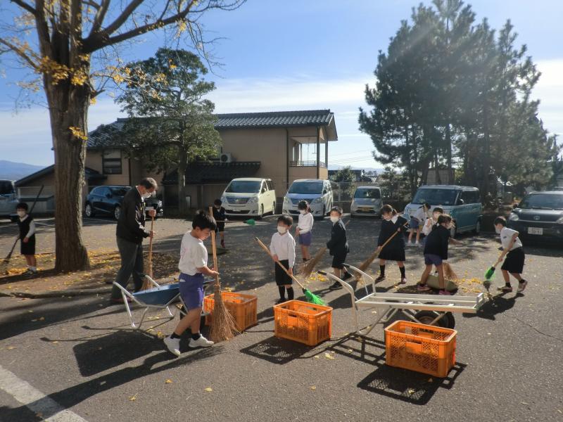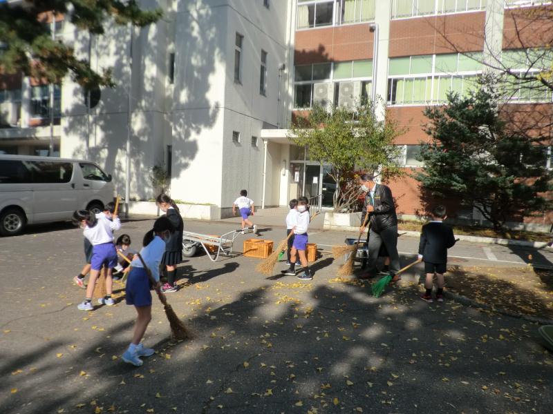 以前にも投稿しましたが、学校にはたくさんの松の木やさくら、いちょうの木があり、秋になると落ち葉でいっぱいになります。