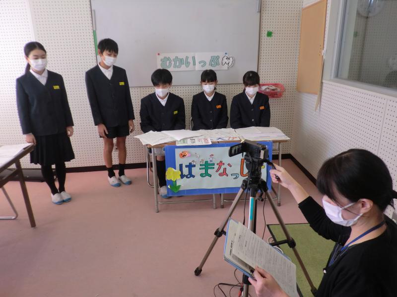 保健委員会のみなさんが、11月から計画・準備を進め、まるで本当のニュース番組のように始まった向粟崎小のニュース番組「むかいっぷ」