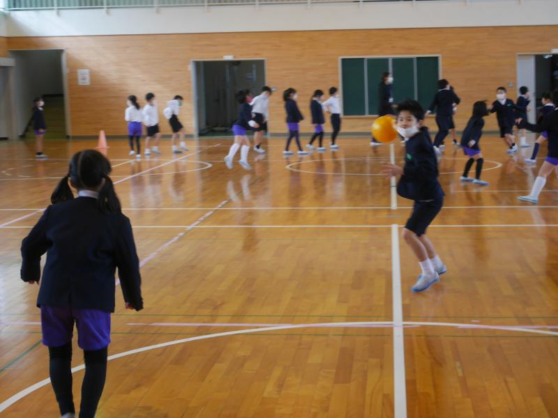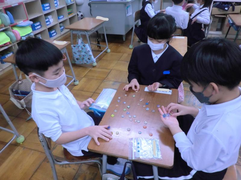 1年生が生活科で、昔からの遊びを楽しんでいます。