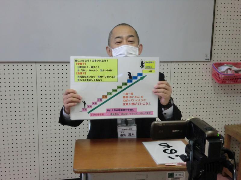 始業式では、校長先生から、次の学年・進学に向けてしっかり準備をしていくために、学習面で3つ、生活面で3つ、頑張っていくことのお話がありました。