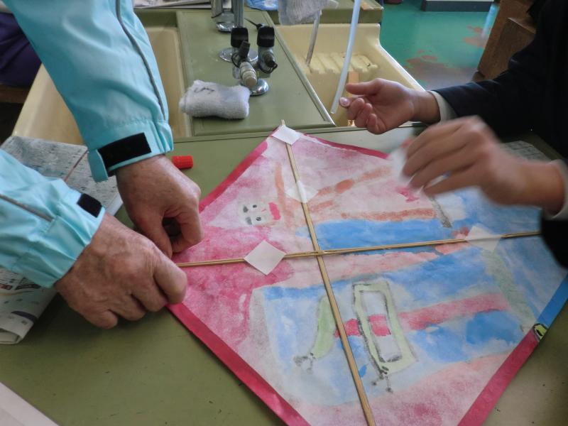 初めて挑戦することばかりで、戸惑うこともありましたが、凧の会のみなさんがグループごとについて優しく声かけしてくださり、子供たちも安心して作業を進めることができました。