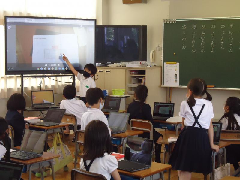 6年生は、事前にクロームブックで作成したスライドをもとに、学校生活や日常生活について紹介しました。