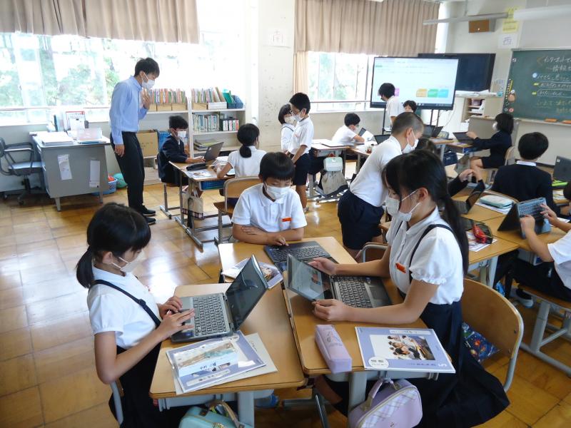 授業が終わった後も、積極的にコミュニケーションをとろうとする5・6年生の姿が見られ、楽しい交流の時間となりました。