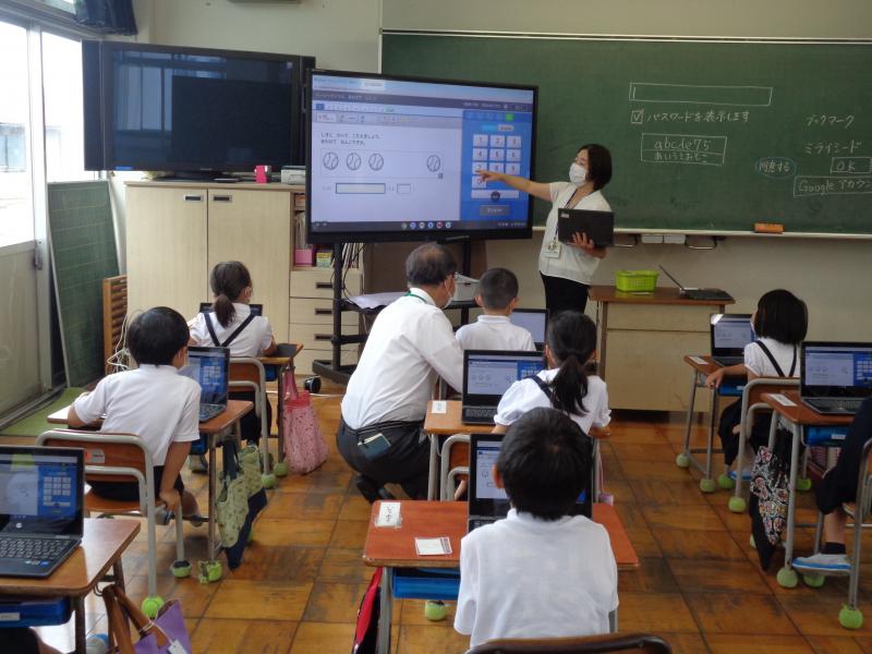 1年生が、学校で初めての「一人一台タブレット」を使用しました。